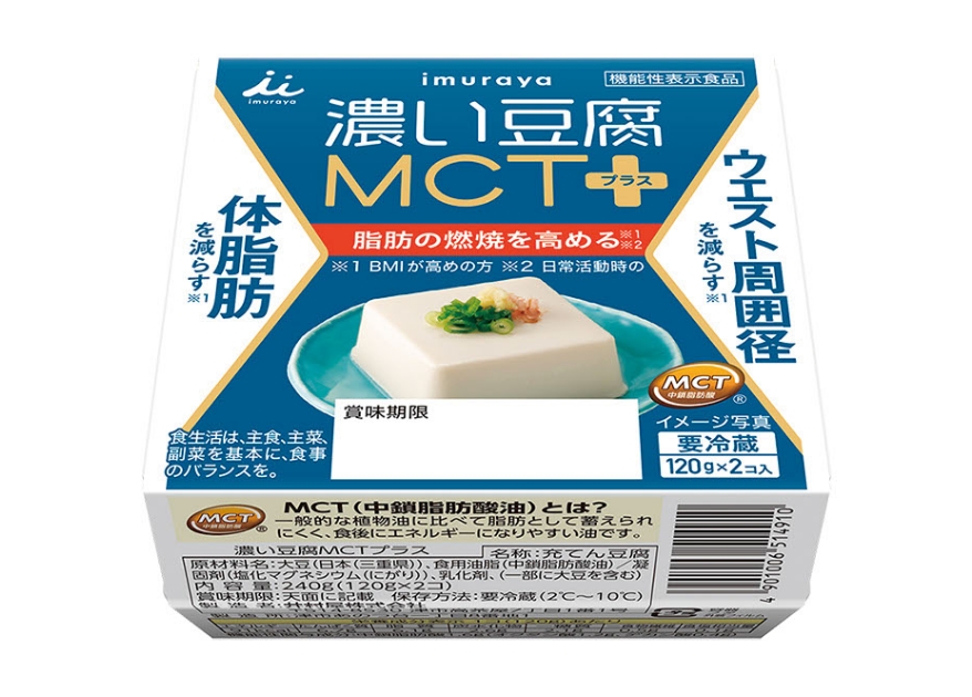このような背景のもと、同社は、健康食材として根強い人気を持つ豆腐と、BMIが高めの人において日常活動時の脂肪の燃焼を高め、体脂肪やウエスト周囲径を減らすことが報告されている、中鎖脂肪酸に着目。これら2つを組合せた同品を開発した。