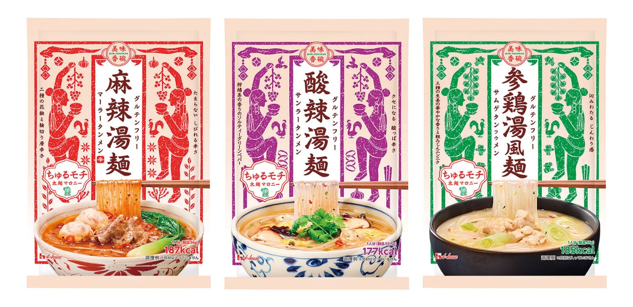 フレーバーは、直近アジアンフードに関心を持つ若年女性が多いことに着目し、①<麻辣湯麺>、②<酸辣湯麺>、③<参鶏湯風麺>の3品を揃えた。