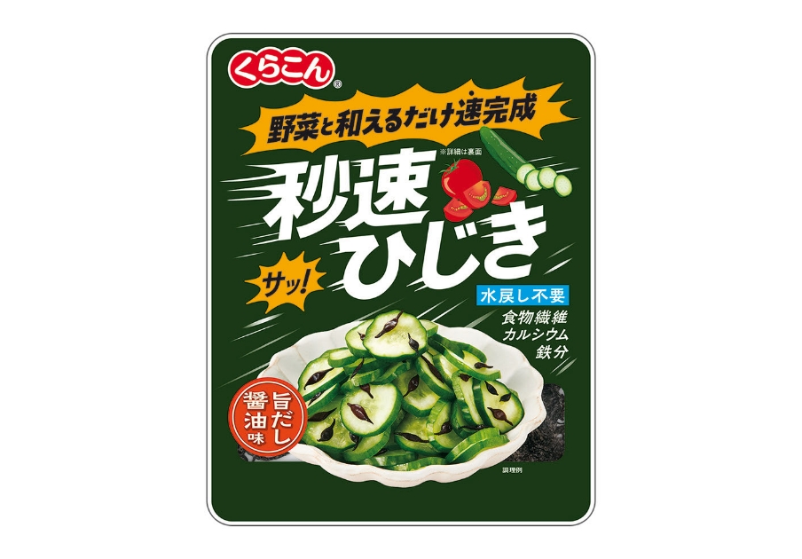 一般的な乾燥ヒジキで和え物を作った場合、ボウルで水戻しを約30分しザルで水を切り、調味料を作って和えるという工程がかかる。同品は、このような調理時間を約30分短縮するだけでなく、ボウルやザルを洗うことなく、“野菜と和えるだけ”というシンプルな調理法で作れる。